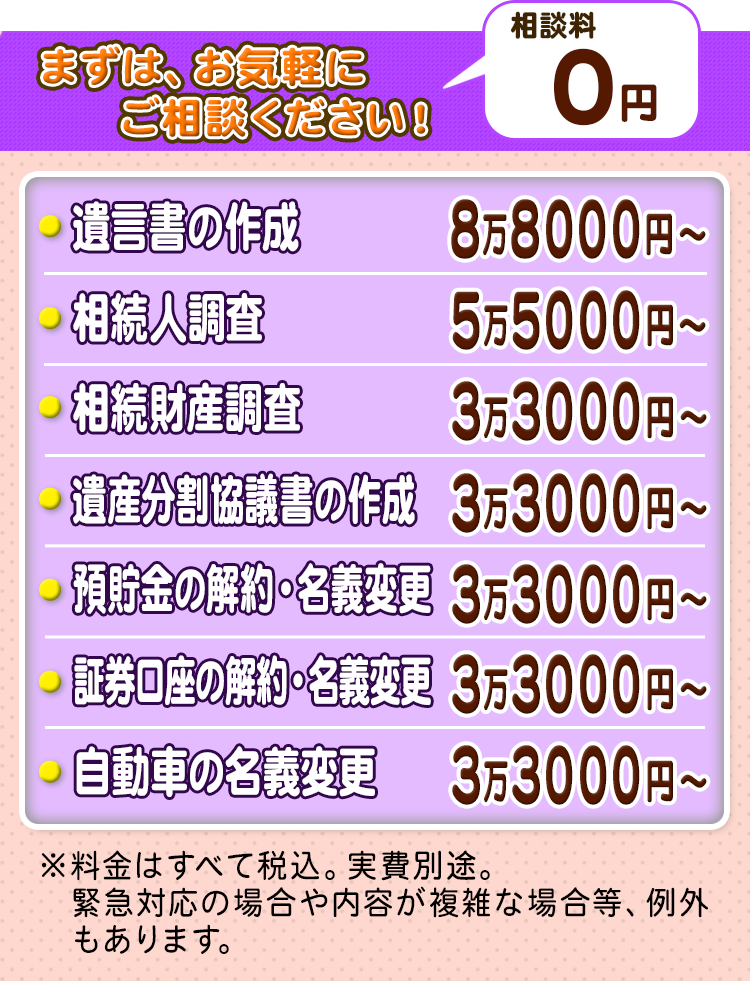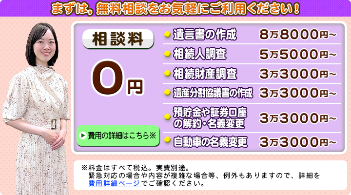 相談料についても、相続手続きのご相談は原則無料で承ります。
