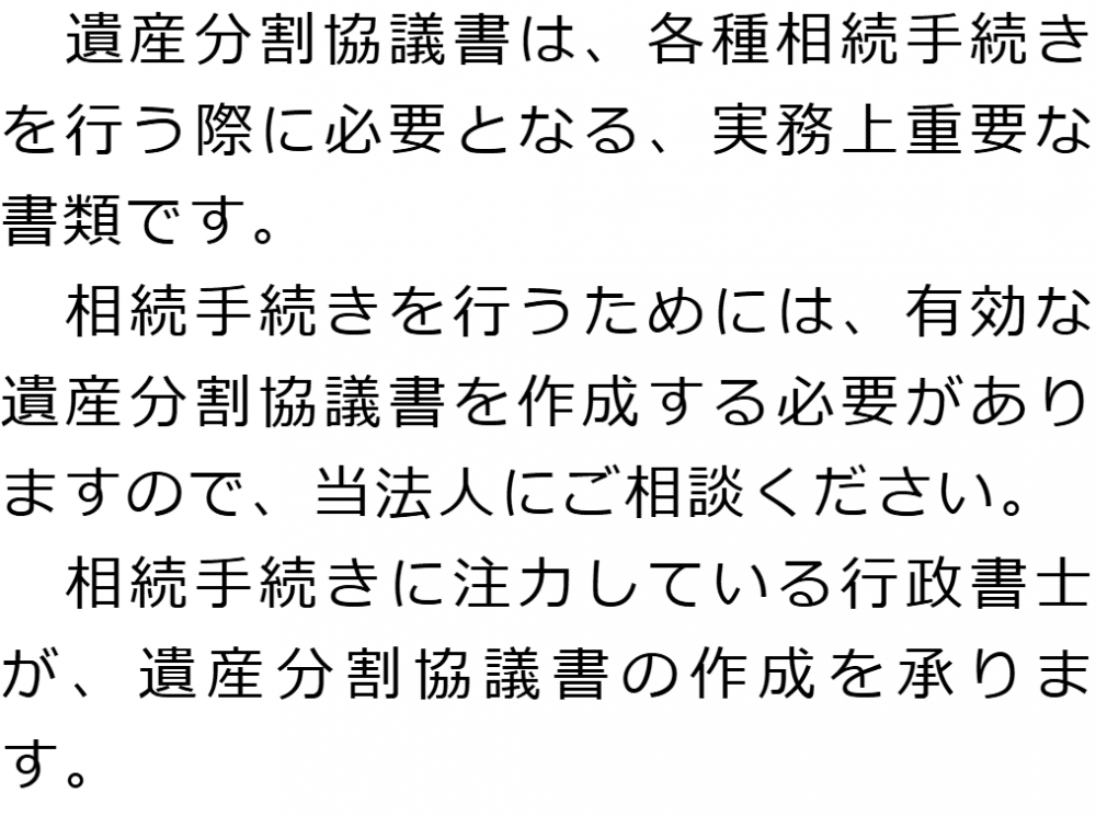 トップ業務内容遺産分割協議書の作成 階層構造▼ 業務内容(目次) 遺産分割協議書の作成 業務内容(目次)業務内容トップ行政書士法人心の業務内容遺言遺産整理相続人調査相続財産調査遺産分割協議書の作成預金・貯金の解約・名義変更証券口座の解約・名義変更自動車の名義変更心グループのその他の業務内容家族信託・民事信託節税対策事業承継遺言の検認相続放棄限定承認遺産分割遺留分侵害額請求相続登記相続税申告相続税調査 受付時間 平日 9時~21時、土日祝 9時~18時 夜間・土日祝の相談も対応します (要予約) 所在地 〒192-0046 東京都八王子市明神町4-7-3やまとビル3F 0120-2403-39 お問合せ・アクセス・地図