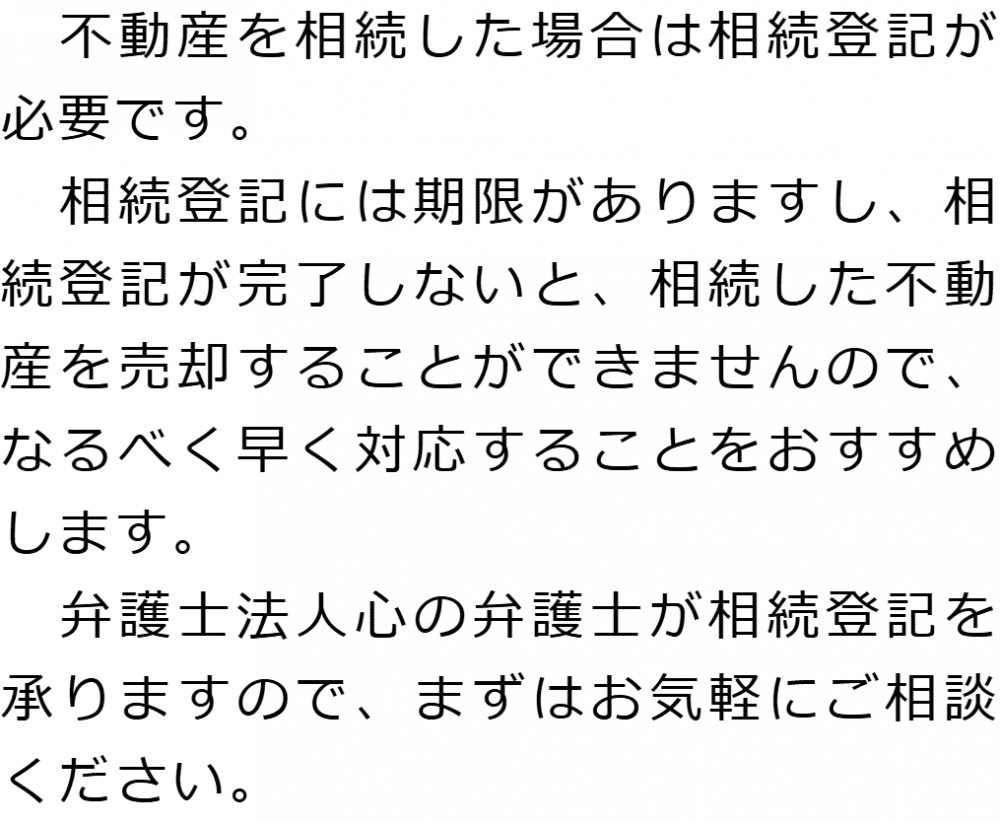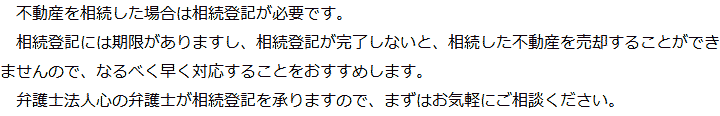 トップ業務内容相続登記 階層構造▼ 業務内容(目次) 相続登記 業務内容(目次)業務内容トップ行政書士法人心の業務内容遺言遺産整理相続人調査相続財産調査遺産分割協議書の作成預金・貯金の解約・名義変更証券口座の解約・名義変更自動車の名義変更心グループのその他の業務内容家族信託・民事信託節税対策事業承継遺言の検認相続放棄限定承認遺産分割遺留分侵害額請求相続登記相続税申告相続税調査 受付時間 平日 9時~21時、土日祝 9時~18時 夜間・土日祝の相談も対応します (要予約) 所在地 〒192-0046 東京都八王子市明神町4-7-3やまとビル3F 0120-2403-39 お問合せ・アクセス・地図